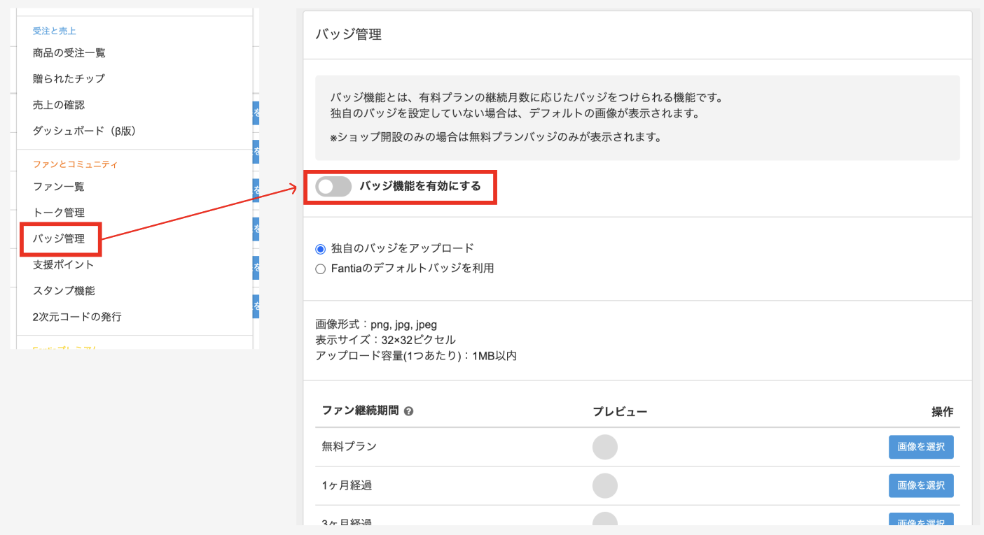 ・メニュー>バッジ管理からONに変更いただけます。