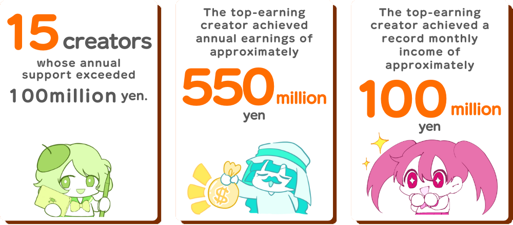 Our growth remains rapid: the 2023 transaction volume reached 16 billion yen—up 130% from the previous year. Furthermore, more than 15 of our registered creators have surpassed 100 million yen in annual support as we continue to evolve by scaling our services and functionality.